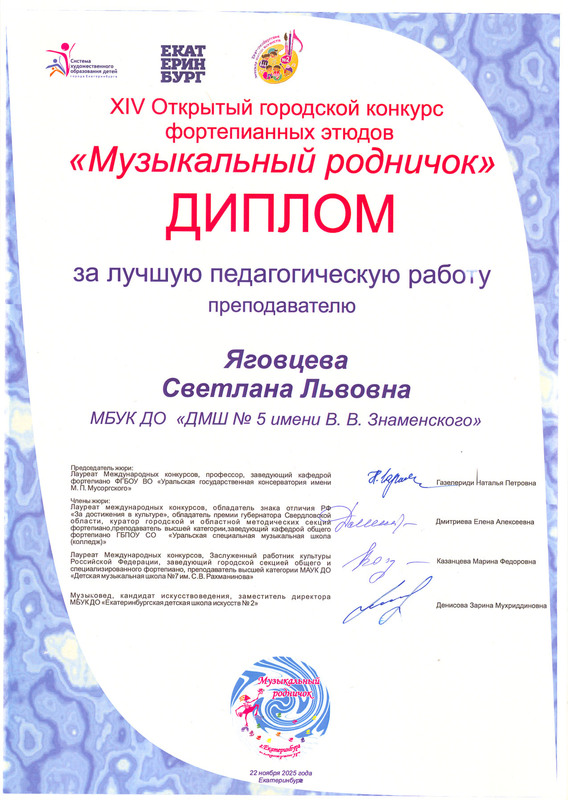 XIV Открытый городской конкурс этюдов по специализированному и общему фортепиано "Музыкальный родничок". 22.11.2025 г.