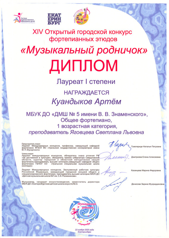 XIV Открытый городской конкурс этюдов по специализированному и общему фортепиано "Музыкальный родничок". 22.11.2025 г.