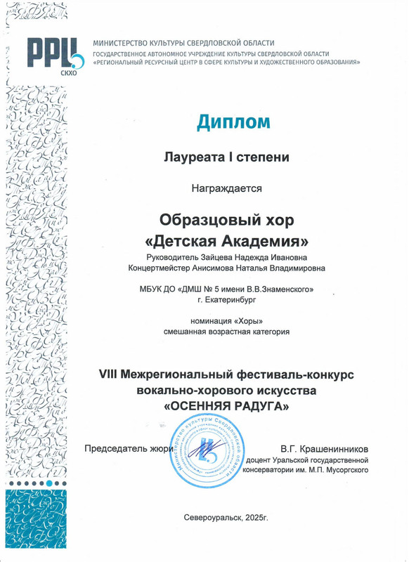 VIII Межрегиональный фестиваль-конкурс вокально-хорового искусства "Осенняя радуга". 22.11.2025 г.