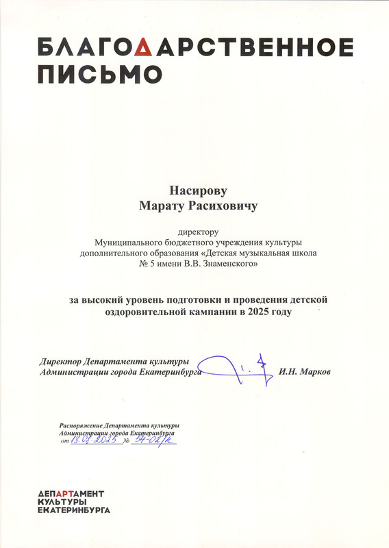 15.12.25 Творческие достижения: Преподаватели: Насиров Марат Расихович. Департамент культуры Администрации города Екатеринбурга. 13.08.2025 г...