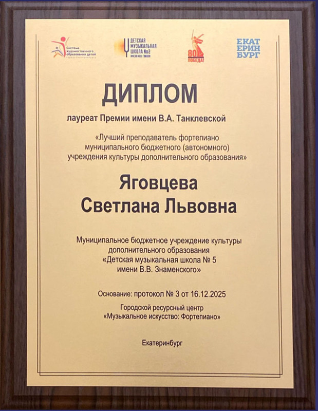 23.12.25 Творческие достижения: Преподаватели: Яговцева Светлана Львовна. Общегородской конкурс обучающихся ДМШ и ДШИ по общему и..
