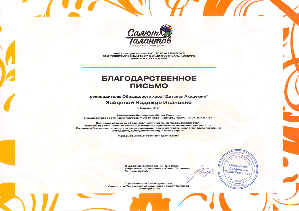 31-й Международный творческий фестиваль-конкурс "Белорусские узоры". 10.01.2026 г.