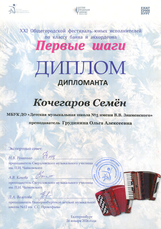 XXI Общегородской фестиваль юных исполнителей по классу баяна и аккордеона «Первые шаги». 24.01.2026 г.