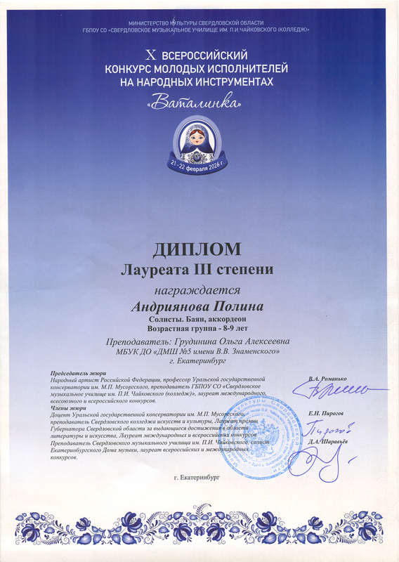 Х Всероссийский конкурс молодых исполнителей на народных инструментах "Ваталинка". 22.02.2026 г.