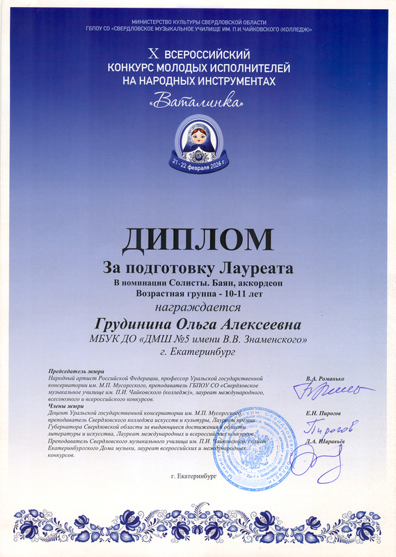 Х Всероссийский конкурс молодых исполнителей на народных инструментах "Ваталинка". 22.02.2026 г.