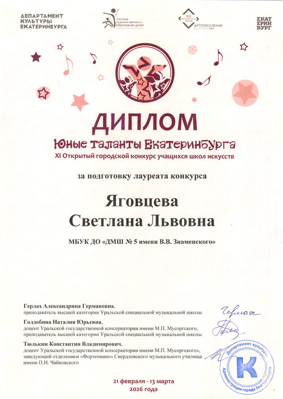 XI Открытый городской конкурс учащихся школ искусств "Юные таланты Екатеринбурга", уровень "профи". 04.03.2026 г.
