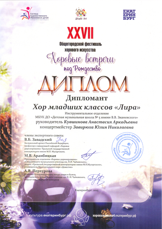 XXVII Общегородской фестиваль хорового искусства учащихся детских школ искусств «Хоровые встречи под Рождество». 21.12.2025 г.