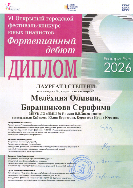 VI Открытый городской фестиваль-конкурс юных пианистов «Фортепианный дебют». 19.03.2026 г.