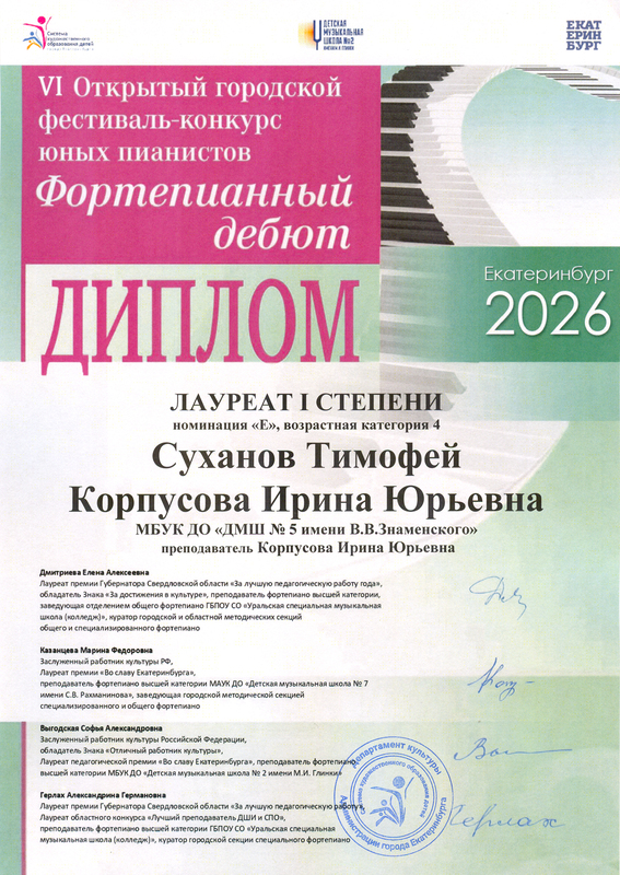 VI Открытый городской фестиваль-конкурс юных пианистов «Фортепианный дебют». 19.03.2026 г.