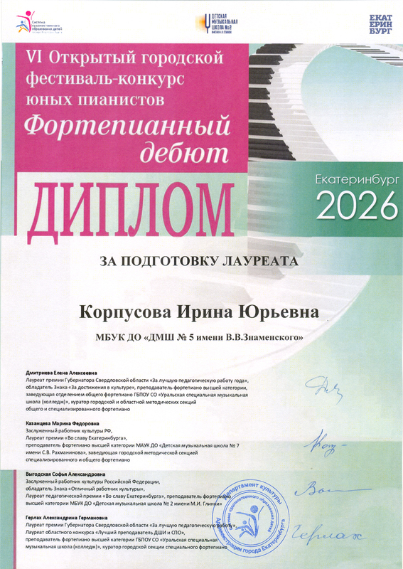 VI Открытый городской фестиваль-конкурс юных пианистов «Фортепианный дебют». 19.03.2026 г.