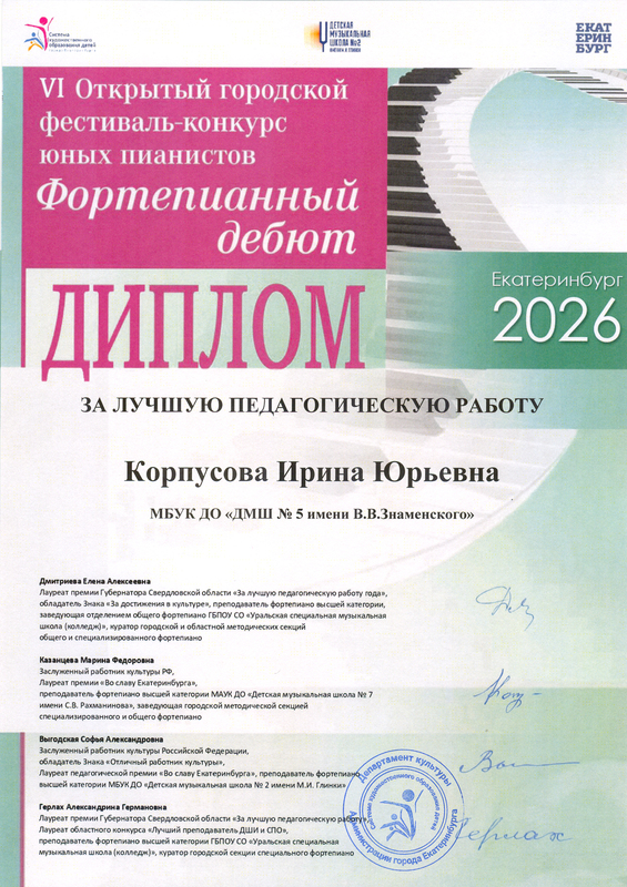 VI Открытый городской фестиваль-конкурс юных пианистов «Фортепианный дебют». 19.03.2026 г.