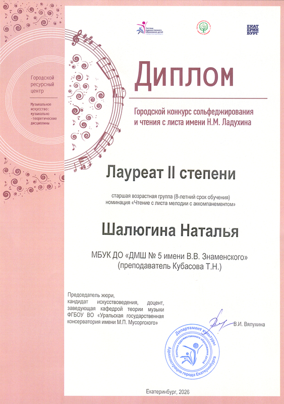 Городской конкурс сольфеджирования и чтения с листа имени Н.М.Ладухина. 04.02.2026 г.