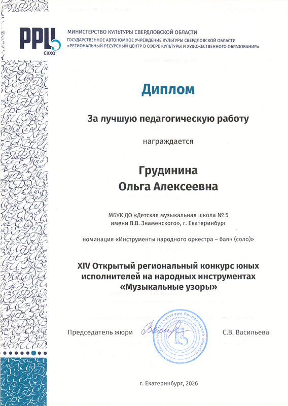 24.04.26 Творческие достижения: Преподаватели: Грудинина Ольга Алексеевна. XVI Открытый региональный конкурс юных исполнителей на народных..